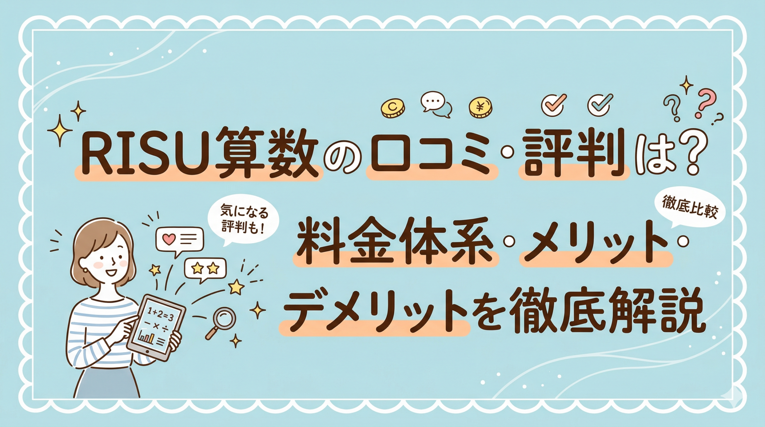 RISU算数の口コミ・評判が気になる方へ。料金体系は高いのか、公文との違い、メリット・デメリット、向いている子まで分かりやすく解説します。入会前の判断材料としてぜひチェックしてください。