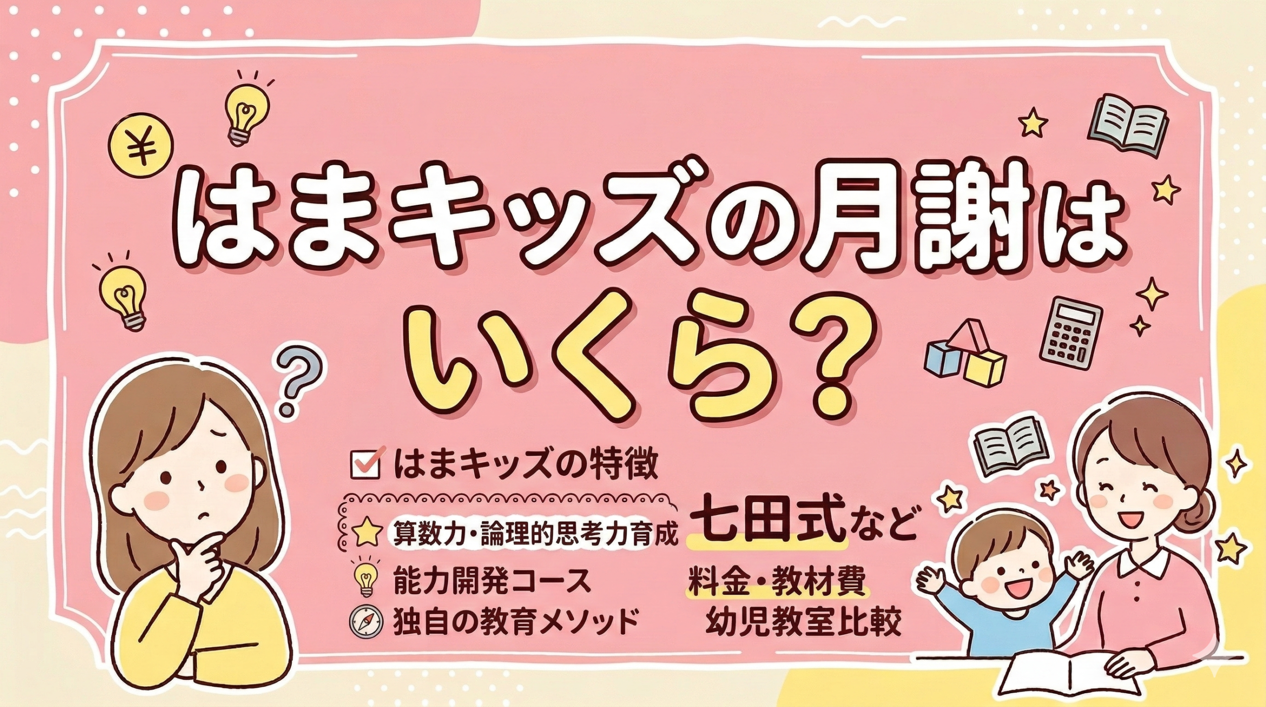 大丈夫。はまキッズの月謝のリアルな費用から、他の幼児教室との違い・特徴までまとめて分かるで。まず全体を見てみよ。